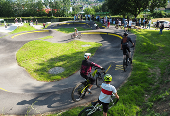 Der Pumptrack verfügt dagegen über Starthügel,Lines mit Sprüngen,Kurven zur Hanglage sowie einen Sprung ohne Gap,den auch Anfänger befahren können. Sitzgelegenheiten und ein Parkplatz in unmittelbarer Nähe zur Anlage befinden sich ebenfalls auf der Anlage.