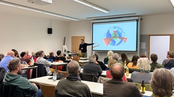 Die GRÜNEN luden ein zu Vortrag und Diskussion mit Moritz Franz-Gerstein,dem frisch gekürten Bundestagskandidaten für den Wahlkreis Göppingen. Gut 60 interessierte Zuhörer:innen in der Hochschule für Wirtschaft und Umwelt (HfWU) in Geislingen präsentierte er die zentralen Erkenntnisse zu den planetaren Grenzen und in welchen Teilbereichen bereits die Limits erreicht oder überschritten sind. Mit einer Mischung aus Vortrag und Diskussion zeigte er auf,wie dringend ein Umdenken ist und welche Lösungen für die Probleme möglich sind.