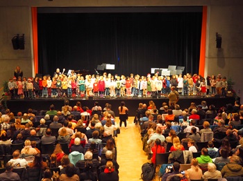 „Wir hatten nicht so viel Zeit zum üben“,hat Yvonne Kolberg,stellvertretende Leiterin der Musikschule Uhingen,den mehr als 350 Anwesenden – Mamas,Papas,Omas,Opas,Tanten,Onkel,Geschwister und Cousins – beim Adventskonzert gestanden. Doch davon war nichts zu hören. Mit Bravour präsentierten die Mädchen und Jungen im Alter zwischen 4 und 61 Jahren auf unterschiedlichen Instrumenten ihre erlernten Fähigkeiten.Die gesamte Bühnenbreite benötigten die Kleinsten: Die Kindergartenkinder der Musikalischen Früherziehung (MFE) trugen von Volker Rosin das Lied „Wisst ihr,was die Frösche machen“ vor,auf der Gitarre begleitet von Sevan Boyaciyan und Henrik Menzlin. Dabei imitierten sie unterschiedliche Tiere,quakten wie ein Frosch oder formten aus ihren Armen den Rüssel eines Elefanten. In der MFE steht die Begegnung mit den elementaren musikalischen Erlebnis- und Ausdrucksweisen im Mittelpunkt.Die gesamte Bühne füllten kurz vor der Pause die Musikschul-Allstars und -Newstars auf,die gemeinsam „Fröhliche Weihnacht“,„Was soll das bedeuten“ und „Jingle bells“ aufführten.Den gesamten Abend über traten die Musikschülerinnen und -schüler mit ihren unterschiedlichen Instrumenten auf: Lina Zepf und Elisea Lanza (Klarinette);  Rea Heidle (Klavier); Rebecca Ayrer und Lev Makovetskij (Trompete,Tenorhorn); Luisa Wallmen (Klavier); Leonie Keppeler und Letty Belca (Querflöte); Sebion Kuray (Klavier); Sara Fritsche (Violone); Eric Shen,Pia Mara Karatas und Sara Karatas (Gitarre); Marius Zeller (Posaune); Samira Jester (Klavier); Zohra Schenk (Klavier); Max Zeller (Trompete); Kilian Güttler (Klavier); Lilly Franke (Querflöte); Pia Mara Karatas (Klavier); Aeoleon Fopoussi (Klavier); Lara Heidle (Violine); Alper Kabal (Klavier); Verena Keßler (Klavier); Filiz Baran (Sopranblockflöte),Lara Misikc (Altblockflöte) und Maja Kalosyan (Tenorblockflöte); Martin Schempp (Klavier) und Pia Mara Karatas sowie Sara Karatas (Gitarre).„Sie werden das eine oder andere Lied sicherlich erkennen“,sagte vorab Yvonne Kolberg. Und so war es denn auch. Abschließend dankten die mehr als 350 anwesenden Zuschauer den jungen Künstlerinnen und Künstlern der städtischen Musikschule für deren Darbietungen mit tosendem Applaus. Yvonne Kolberg: „Das Adventskonzert dient auch dazu,dass unsere Schülerinnen und Schüler den Lohn fürs Lernen der Instrumente und ihre damit verbundene Geduld erhalten: den Applaus.“Info: Wer ein Instrument erlernen oder mehr über das Angebot der städtischen Musikschule erfahren will,erhält weitere Infos auf https://www.uhingen.de/musikschule im Internet.PM (Stadtverwaltung Uhingen): Vor vollbesetzten Reihen treten die Schülerinnen und Schüler,hier die Musikschul-Newstars,der Musikschule Uhingen im Uditorium auf.PM Stadtverwaltung Uhingen