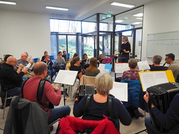 Wie klingt ein so besonderes Jubiläum wie 750 Jahre? Eine Antwort darauf liefern fast 50 Musikerinnen und Musiker aus nahezu allen musiktreibenden Vereinen und Institutionen der Stadt Uhingen. Sie haben sich anlässlich des Uhinger Jubiläumsjahres zu einem Projektorchester zusammengeschlossen,das kürzlich erstmals geprobt hat.„Ich höre alle Instrumente relativ ausgewogen“,sagt Yvonne Kolberg anerkennend. „Ich hatte die Befürchtung,dass bei so vielen verschiedenen Gruppierungen die normalerweise nicht zusammen im Orchester vereint sind einige Instrumente (klanglich) untergehen“, gesteht die stellvertretende Leiterin der städtischen Musikschule vor den etwa 50 Frauen und Männern im „Raum der Musik“,den Proberäumen von Harmonika-Orchester Uhingen (HOU) und Musikverein Uhingen (MVU) im rückwärtigen Erdgeschossbereich des Hallenbades am Haldenberg. Yvonne Kolberg teilt sich mit MVU-Dirigent Achim Ziegele das Dirigat des Projektorchesters. Zusammen mit dem HOU-Vorsitzenden Lothar Bargiel bilden sie das Orga-Team des Projektorchesters.Sie alle eint neben der Liebe zur Musik ein Ziel: Beim Festakt am Freitag,4. April,im Uditorium – dem offiziellen Start des Uhinger Jubiläumsjahres – für den richtigen Takt sorgen. Bis es soweit ist,muss jede Note,muss jeder Takt sitzen. Und davon gibt es einige. Denn in wenigen Wochen sollen inklusive Zugabe 8 Lieder erklingen. Welche Titel zu hören sein werden,soll aber eine Überraschung bleiben. Die erste Probe aber hat gezeigt: Die Frauen und Männer sind auf dem besten Wege,für ein besonderes Klangerlebnis zu sorgen.Doch schon lange bevor nun im „Raum der Musik“ der erste Ton des Projektorchesters erklingen konnte,liefen die Vorbereitungen. Einerseits mussten die Teilnehmenden zusammengetrommelt werden und andererseits die gemeinsamen Termine sowie das „Arbeitsmaterial“ organisiert werden. Jürgen Rothfuß (Klavierlehrer und Chorleiter in Göppingen und Sänger der Band „Blue Stars“) prüfte in den vergangenen Monaten die Noten auf ihre Tauglichkeit für die Vielfalt der Instrumente,die im Uhinger Projektorchester erklingen. „Wo kommt es sonst vor,dass Querpfeifen vom Spielmannszug,Akkordeonorchester,Chor,Schlag-,Holz- und Blechblasinstrumente gemeinsam ein Konzert geben?“,fragt Lothar Bargiel. „Das ist äußerst selten.“Dementsprechend sei die Bedeutung des Uhinger Projektorchesters hervorzuheben,betont auch Uhingens Bürgermeister Matthias Wittlinger. „Ich bin sehr dankbar dafür,dass sich so viele Musikschaffende bereit erklärt haben,für den musikalischen Auftakt in unser Festjahr zu sorgen und es mit ihrem künstlerischen Einsatz zu begleiten und zu bereichern“,sagt der Bürgermeister. Er wisse von keiner anderen Gemeinde,die mit einem solchen Projektorchester auftrumpfen könne. „Das ist für uns ein Aushängeschild,auf das wir und alle Bürgerinnen und Bürger aus Uhingen stolz sein können!“Bei der ersten Chorprobe ging es aber nicht nur um harmonische Töne,sondern auch einen harmonischen Look. Denn für das Konzert am 4. April beim Festakt (Beginn um 19 Uhr im Uditorium) und einen Auftritt am 10. Mai beim HOU-Frühjahrskonzert (Beginn: 19.30 Uhr im Uditorium) soll das Projektorchester Uhingen auch entsprechend einheitlich aussehen. Die Stadt Uhingen kleidet die Mitglieder des Projektchores aus Dankbarkeit für deren freiwilligen Einsatz mit einem eigens bestickten Poloshirt aus,das über die Modewelten Frey beschafft wird. Und damit das Outfit passt,erfolgte in einer Probenpause eine Anprobe.Info:Mit dem offiziellen Festakt von Uhingens 750 Jahr-Feier erfolgt der Auftakt der Jubiläumsveranstaltungen im Jahr 2025. An diesem Abend wird auch das neue Buch zur Stadtgeschichte von Kreisarchivar Dr. Stefan Lang vorgestellt. Die Veranstaltung wird musikalisch begleitet vom „Uhinger Projektorchester 2025“,das sich aus Musikschaffenden und Sängern der vielfältigen Uhinger Einrichtungen gebildet hat. Geleitet wird das Projektorchester von Yvonne Kolberg (Musikschule Uhingen) und Achim Ziegele (Musikverein Uhingen).Uhingen und neun andere Gemeinden aus dem Kreisgebiet feiern im Jahr 2025 ein historische Begebenheit. Denn in einem Dokument,der „Liber Decimationis“ aus dem Jahr 1275 wurden die Gemeinden erstmals urkundlich erwähnt. Neben Uhingen handelt es sich dabei um Albershausen,Donzdorf,Dürnau,Hattenhofen,Ottenbach,Salach,Schlat,Schlierbach und Steinenkirch. Die besondere Erwähnung vor 750 Jahren wird auf ganz unterschiedliche Art und Weise gefeiert. Das ist in Uhingen in diesem Jahr geboten: ab April Stadtrallye der Stadtbücherei Freitag,4. April: Festakt im Uditorium Samstag,5. April: SWR3 Party im Uditorium Sonntag,6. April: Vernissage „So war’s! Uhingen in historischen Ansichten“ im Berchtoldshof Mittwoch,14. Mai: Stadtführung „Uhingen am Wasser – Von Mühlen,Brücken,Brunnen und Hochwassern“ Samstag,17. Mai: „Radtour durch 3000 Jahre Geschichte“ mit Albershausen,Schlierbach und Hattenhofen Freitag,23. Mai: Vernissage „Uhinger Geschichte – Geschichten“,Federzeichnungen von Friedrich Schurr im Rathaus Samstag,24. Mai: „Danzfest“ des Schwäbischen Albvereins im Uditorium Freitag,27. Juni: „Nacht der Offenen Kirchen“ Samstag,28. Juni,Sonntag,29. Juni: Kandelhock mit Festumzug,Lasershow und Fun für Kids Sonntag,20. Juli: Gau-Kinder- und Jugendturnfest Donnerstag,31. Juli: Freibadfest Freitag,26. September: „750 Jahre Uhingen – Markus Zipperle schwätzt über älles,auch über Uhingen“ im Uditorium Sonntag,28. September: Sparda Xtrem Uhingen,Uhinger Sonntag,Entenrennen und Fest der MusikWeitere Informationen zu den einzelnen Veranstaltungen stehen auf www.uhingen.de/750Jahre im Internet.Foto (Stadt Uhingen): Im „Raum der Musik“ proben die fast 50 Frauen und Männer des Projektorchesters acht Stücke. PM Stadtverwaltung Uhingen
