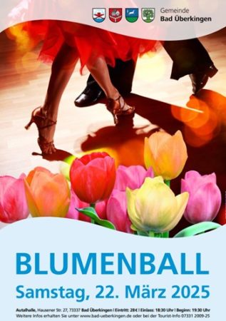 Nach einer mehrjährigen Pause freut sich die Gemeinde Bad Überkingen,den traditionellen Blumenball endlich wieder ausrichten zu können. Die Veranstaltung findet am Samstag,den 22. März 2025,in der Autalhalle in Bad Überkingen statt. Einlass ist ab 18:30 Uhr,der Abend beginnt um 19:30 Uhr.