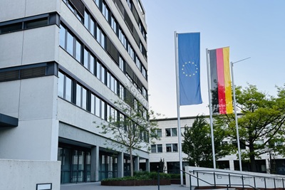 Anlässlich des Europatags am 9. Mai wird wie jedes Jahr das Dienstgebäude des Landratsamts an der Lorcher Straße in Göppingen mit der Europaflagge beflaggt.