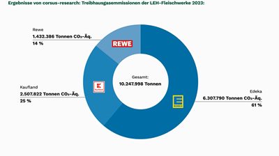 Rewe und Kaufland haben sich zur Klimaneutralität bis spätestens 2050 verpflichtet,Edeka sogar bis 2045. Die Hälfte der Emissionen von Supermärkten entfällt jedoch auf klimaschädliche Fleisch- und Milchprodukte – und bislang wird nicht deutlich,wie die Konzerne diese Klimatreiber in ihren Sortimenten reduzieren wollen. Im Gegenteil: Rewe,Kaufland und besonders Edeka bauen ihre Fleischproduktion seit Jahren aus. “Ohne die Fleischmengen drastisch zu reduzieren und Transparenz über Haltungsformen und Fleischmengen herzustellen,bleibt Klimaneutralität eine leere Floskel”,so Hamester. Marktführer Edeka verantwortet mit seinen 15 Fleischwerken mehr als 60 Prozent der Fleischproduktion der drei Konzerne und über 6,3 Millionen Tonnen CO₂-Emissionen. “Bei Edeka sollen in diesem Jahr sogar noch weitere Fleischwerke hinzukommen. Die Emissionen werden also steigen,statt wie nötig zu sinken”,so Hamester. “Wer soll Edeka seine Klimaversprechen da glauben?“