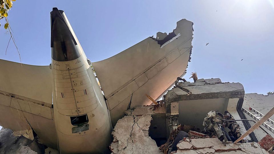 Wrackteil der Air-India-Boeing-787 nach dem Einschlag in ein Hochhaus in Ahmedabad