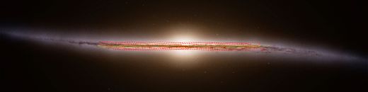 Illustration einer Seitenansicht der Milchstraße mit der geschätzten Umlaufbahn von 3I/ATLAS