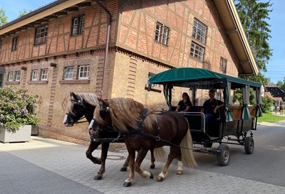 Treffpunkt: am Stutenbrunnen im Innenhof des GestütsMit dem Planwagen oder einer eleganten Kutsche das Gestütsareal entdecken (Foto: Gille-Eberhardt)