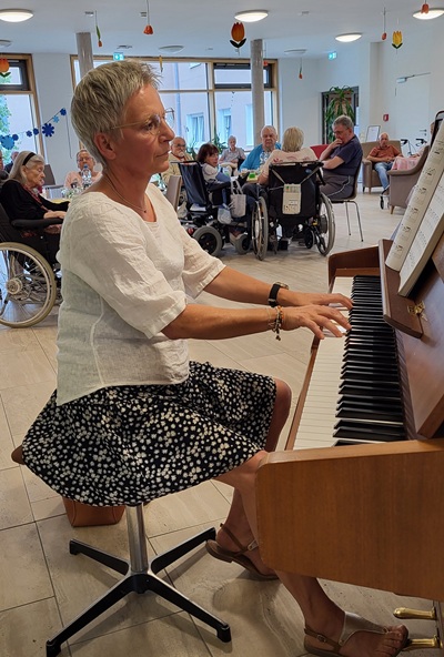 Doch von vorne – worum geht es?Die Stadt Weilheim stellte sich die Frage,wie sich ihre Mitarbeitenden im Ort sozial engagieren können. Schnell war eine Idee geboren: Die Mitarbeitenden können sich einmal im Jahr mit ihren Interessen oder Hobbys für einen guten Zweck einbringen. Das Beste daran,dafür wird Arbeitszeit gutgeschrieben.Als erster Kooperationspartner fiel die Wahl auf das DRK-Seniorenzentrum Haus Kalixtenberg in Weilheim. Für den Auftakt und zum Kennenlernen hatten die städtischen Mitarbeitenden ein buntes Mitmach-Programm vorbereitet:Die Kinder der Kita Lerchenstraße bastelten mit ihren Erzieherinnen bunte Sommer-Deko. Bekannte Volkslieder zum Mitsingen wurden am Klavier begleitet und gesanglich vom Rathaus-Team unterstützt.Das städtischen Wappensymbol – einen Schlüssel in gebackener Form – hatte der Besuchstross ebenfalls mit im Gepäck. Dieser passte wunderbar zu den Snacks und Cocktails,die die Küchencrew vom Haus Kalixtenberg aufgetischt hatte. Als weiteres Angebot wurde die Arbeit der städtischen Sprachkoordinatorin mit ihrem Therapiebegleithund vorgestellt,der zukünftig regelmäßig die Bewohner des Seniorenheims besuchen wird. Zum Abschluss gab es eine kleine Quiz-Runde zu Weilheim: Ob die Frage der Einwohnerzahl,dem Lindach-Ursprung oder der schwäbischen Mundart,die betagten Bewohner rätselten interessiert mit.Fazit des kurzweiligen und geselligen nachmittags: Das städtische Engagement wurde mit großem Applaus der Bewohner des Seniorenheims quittiert und soll unbedingt weitergeführt werden.PM Stadtverwaltung Weilheim
