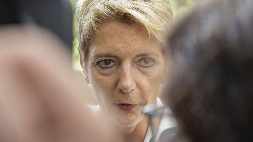 Schweizer Bundespräsidentin Karin Keller-Sutter während ihres Statements zu den US-Zöllen