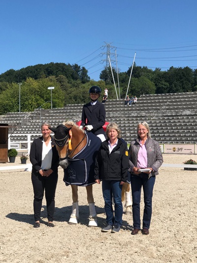 Bei den Ponys kratzte Greta Grill (LPSV Donzdorf Alb/Fils) im Sattel von Tackmann’s Bagel knapp an der begehrten 70% Marke und sicherte sich mit insgesamt 69,880% den Sieg in dieser Dressurprüfung Klasse L*. Auf Platz zwei und drei folgten Mia Oertel (PZRRV Heddesheim) und Sophia Bäuerle (RC Badhof-Bad Boll) mit ihren Ponys Golden Glory und Cromwell.