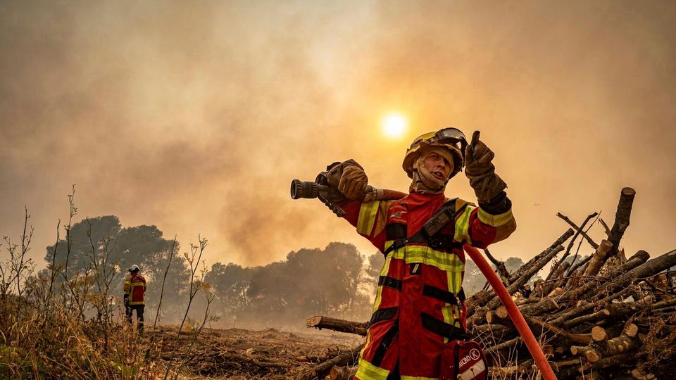 Feuerwehrmann in der Nähe von Saint-Laurent-de-la-Cabrerisse,Südfrankreich: Kampf gegen das Feuer