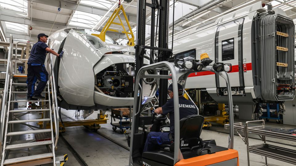 Siemens-Mitarbeiter bei der Montage eines ICE