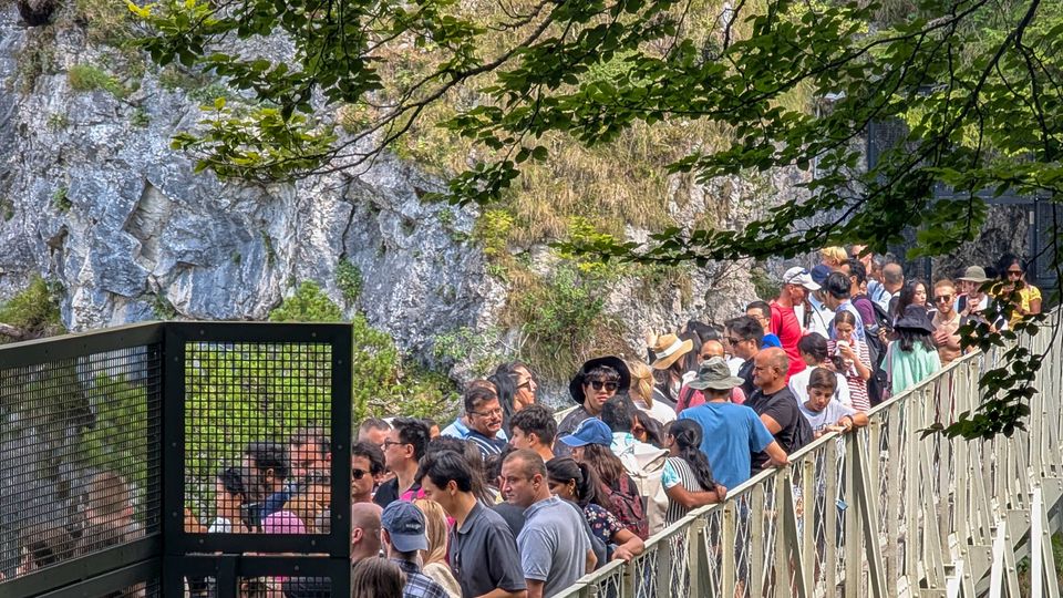 Touristen tummeln sich auf der Marienbrücke beim Schloss Neuschwanstein