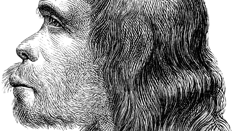 Illustration eines Neandertalers aus dem Jahr 1880: Die meisten Menschen tragen ein paar Prozent Neandertaler-Erbgut in sich