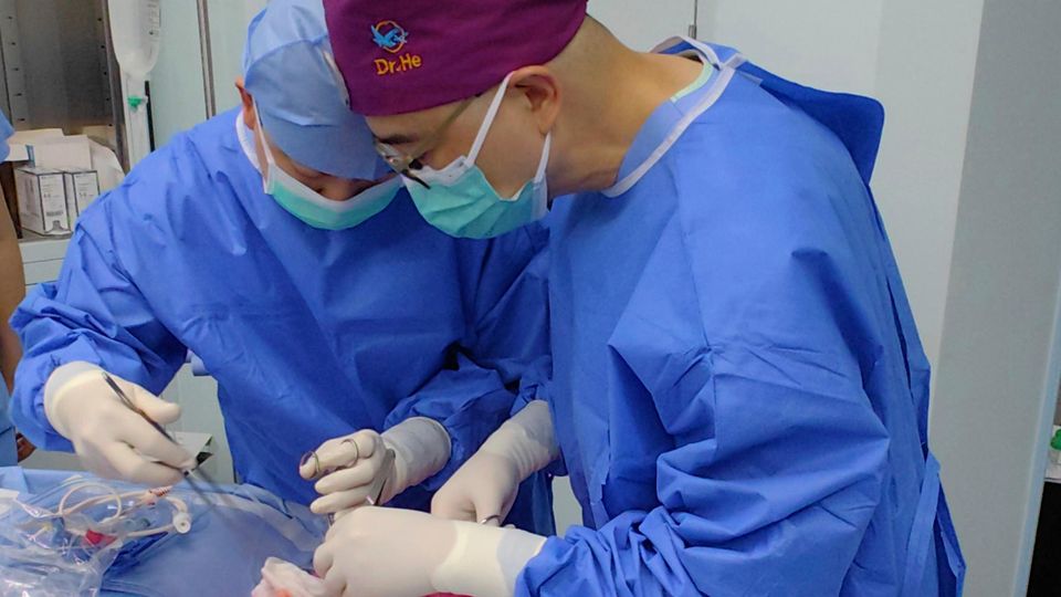 Chirurgen in Guangzhou bei Implantation der Schweinelunge
