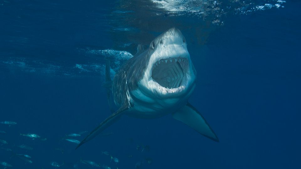 Weißer Hai mit offenem Maul