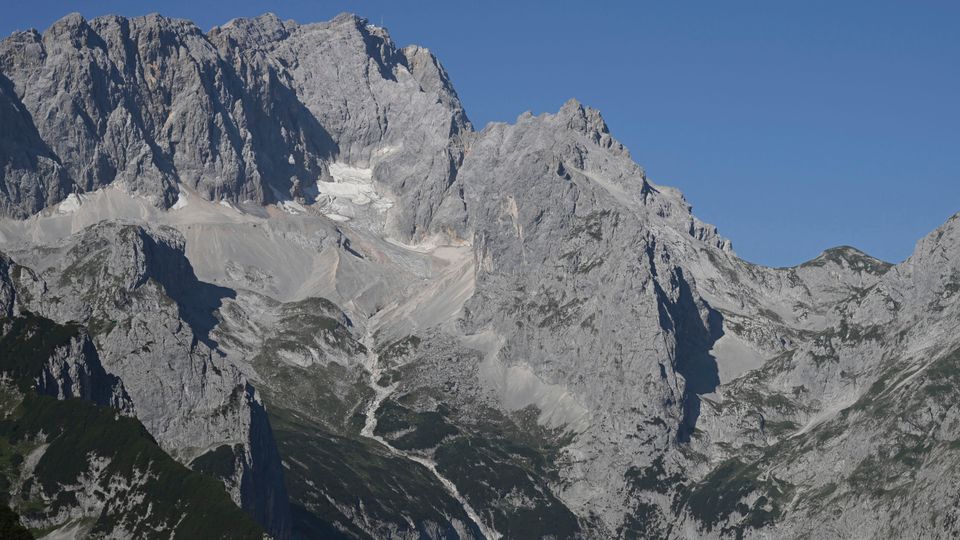 Die Sonne scheint auf den Höllentalferner unterhalb des Zugspitzgipfels: Der Permafrost verschwindet