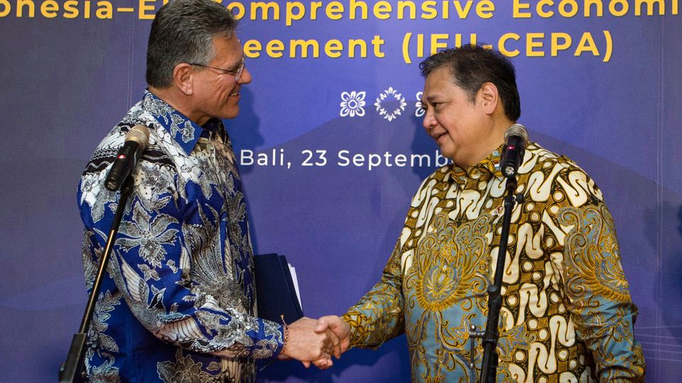 Verhandlungspartner Maroš Šefčovič und Airlangga Hartarto: Vorteile für beide Seiten