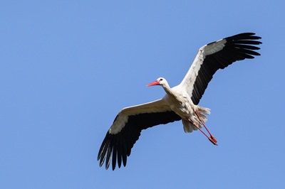 Foto (NABU/Marc Scharping): Fliegender Weißstorch NABU Marc Scharping aR
