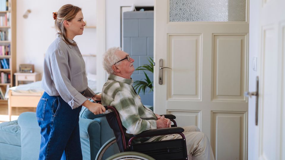 Patient im Rollstuhl: 131 Euro Entlastungsbeitrag im Monat