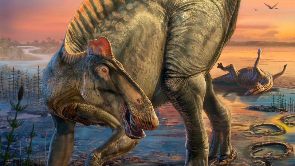 Künstlerische Darstellung von Edmontosauriern: Die Dinosauerier versanken vor etwa 66 Millionen Jahren in einem Flussbett