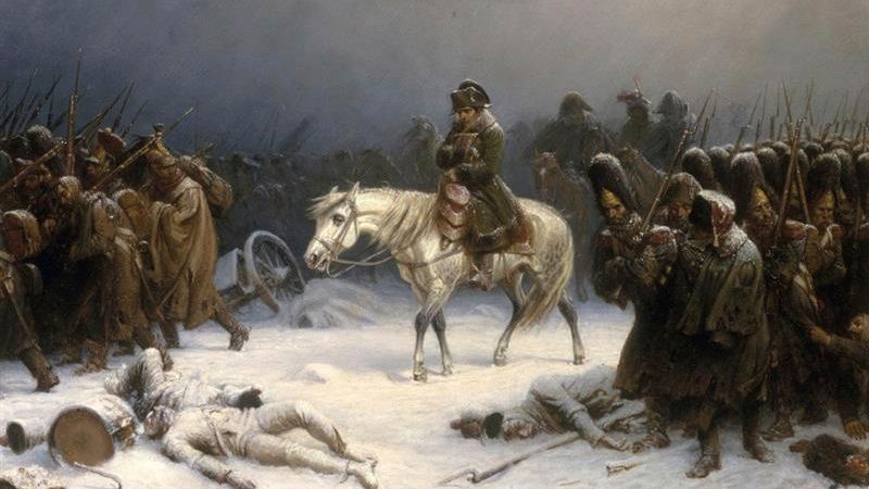 Das Gemälde,datiert auf das Jahr 1851,mit dem Titel »Napoleons Rückzug aus Moskau« von Adolph Northen stellt die Situation der Armee dar