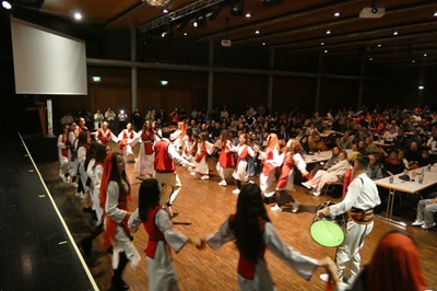 So forderte beispielsweise die italienische Gruppe ihr Publikum zum fröhlichen Tanz auf und die Trommler der albanischen Gruppe schafften eine ganz besondere Stimmung im Saal. „Die herzliche Atmosphäre hat den Abend für mich besonders gemacht,“ resümierte Nora Gashi-Abedini,Vorsitzende des albanischen Kulturvereins ‚Mutter-Theresa‘. Auch für Rebekka Khaliefi,Integrationsbeauftragte der Stadt,war das Fest ein voller Erfolg. Sie freut sich auf eine Fortsetzung dieser fest im Eislinger Kalender verankerten Veranstaltung. Bei italienischen Arancini,gefüllten Weintraubenblättern,asiatischen Frühlingsrollen,schwäbischen Maultaschen und vielen weiteren kulinarischen Besonderheiten konnten die Besucherinnen und Besucher des Festes den Abend ausklingen lassen und über Kultur,Land und Leute ins Gespräch kommen.