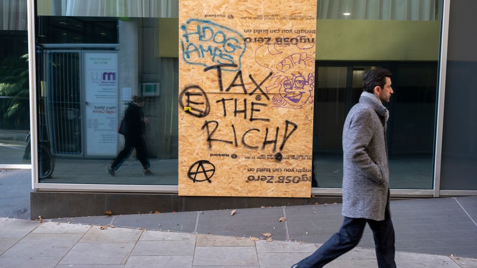 »Tax the rich«-Graffito in London: »Eine Welt,die eine immer größer werdende Ungleichheit toleriert,kann nicht auf dauerhaften Frieden,Wohlstand oder Nachhaltigkeit hoffen«