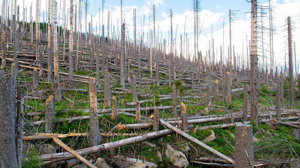 Abgestorbener Wald am Brocken (Harz): Von der Senke zur CO₂-Quelle