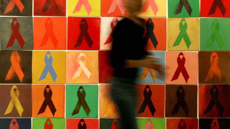 Eine Frau läuft in Athen an einem Kunstwerk zum Thema Aids vorbei: 1,3 Millionen HIV-Infektionen im vergangenen Jahr