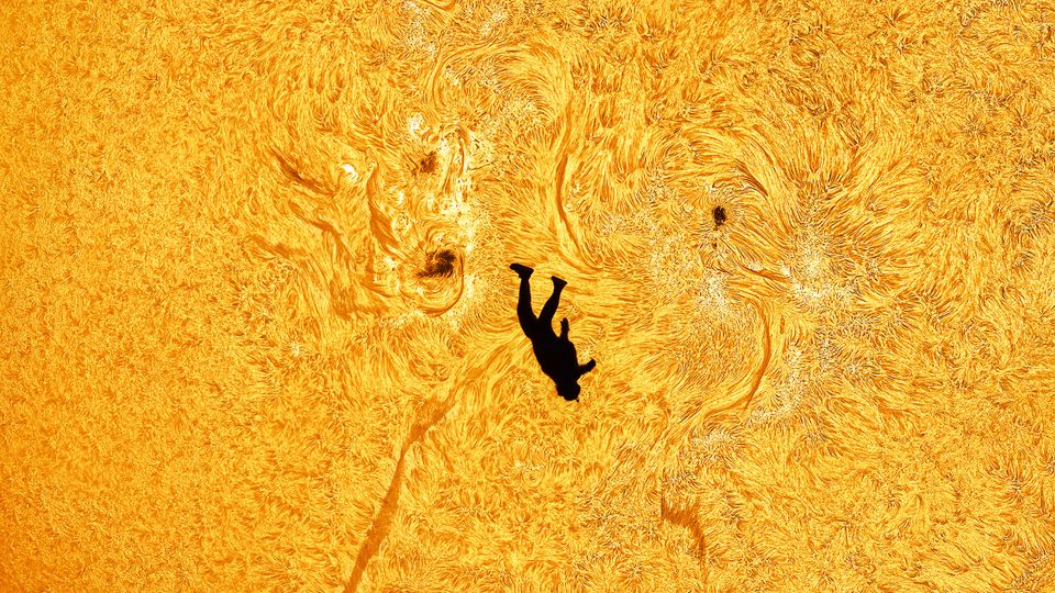 Foto mit Teleskop: Der schwarze Schatten auf dem Bild ist der Fallschirmspringer Gabe Brown