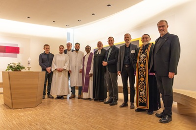 In ihren Grußworten würdigten Wolfgang Schmid,Kaufmännischer Geschäftsführer des ALB FILS KLINIKUMS,und der Künstler Bernhard Huber die große Bedeutung eines Ortes,der Menschen unabhängig von ihrer religiösen Zugehörigkeit offensteht. Die Krankenhausseelsorge,vertreten durch Pastoralreferentin Sonya Schmid-Richardson,Pfarrer Achim Esslinger und Pfarrer Leonard Lemchukwu sprachen zusammen mit Pfarrer Habip Önder von der syrisch-orthodoxen Gemeinde und Mehmet Sahin vom DITIB Türkisch Islamischen Gemeinde zu Göppingen e.V. anschließend ein gemeinsames Gebet sowie Fürbitten für Mitarbeitende,Angehörige und Patienten. Musikalisch wurde die Veranstaltung von Kirchenmusiker Norbert Englbrecht am Klavier begleitet.
