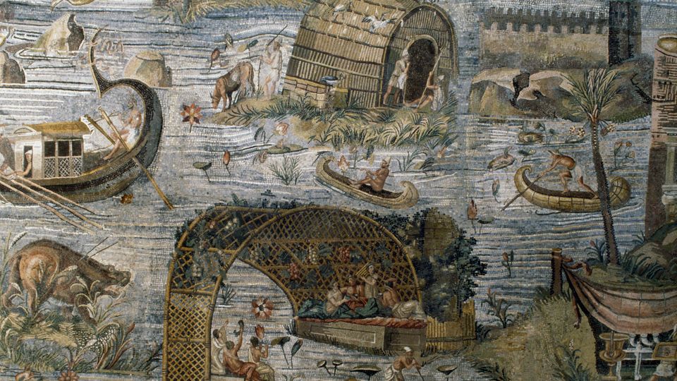 Ausschnitt aus dem Nil-Mosaik,das die Überschwemmung des Nils in Ägypten darstellt