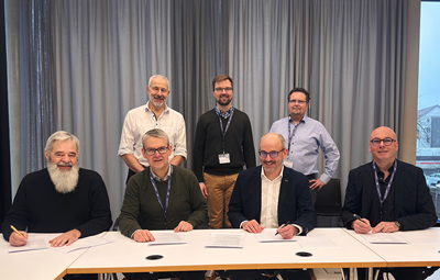 Foto (EVF): (v.l.) in der vordere Reihe: Siegfried Limmer,Geschäftsführer FutureE GmbH,Prof. Dr. Ralf Wörner,Institut INEM der Hochschule Esslingen,Peter Naab,Geschäftsführer Technik Energieversorgung Filstal GmbH & Co. KG,Michael Frankenberger,Wasserstoffbeauftragter Energieagentur Landkreis Göppingen gGmbH. In der hinteren Reihe sind (v.l.): Matthias Weihermann,Geschäftsführer RES Rationelle Energie Süd GmbH,Prof. Dr. Felix Maus,Hochschule Esslingen Campus Göppingen,Dr. Oliver Ehret,Hochschule Esslingen Campus Göppingen.