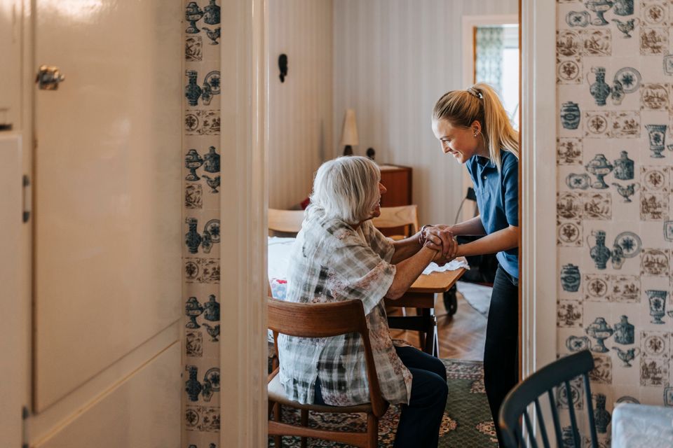 Bedürftige mit Pflegerin
